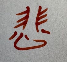 I have found that there are many variations, including ‘misaligned heart’, ‘a heart weighed down by what is wrong’, ‘the state of the heart when something irreversible occurs’. Bēi describes deep and enduring sorrow.